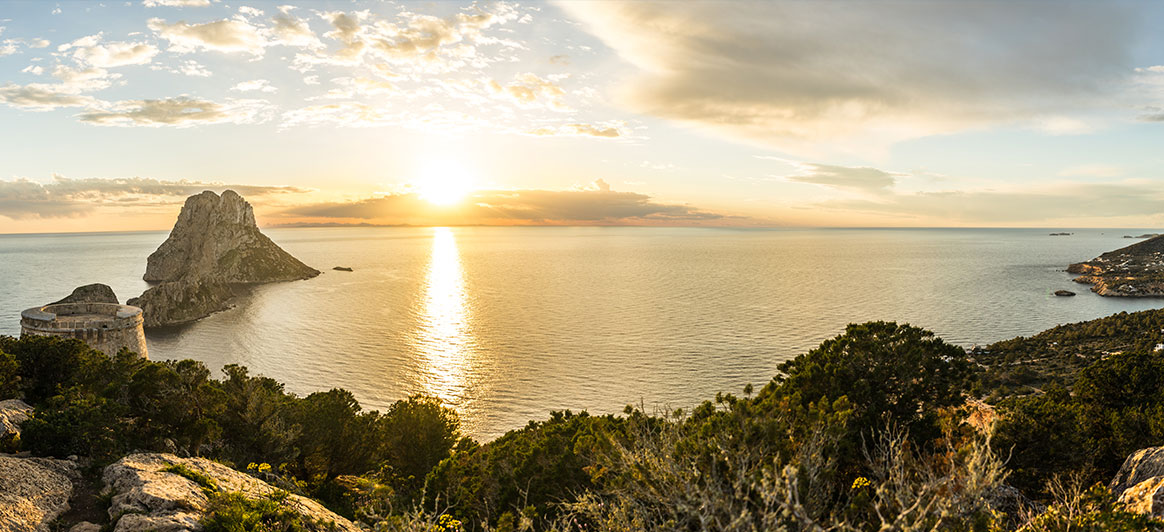 Cala d’ Ort: Unul dintre cele mai frumoase golfuri de pe coasta de sud-est a insulei Ibiza, înconjurat de stânci abrupte și de pini în fundal. Ceea ce face ca locația să fie și mai magică este apusul de soare cu vedere la spectaculosul Es Vedrà, o insulă stâncoasă de calcar abruptă care se ridică la 400 de metri deasupra Mării Mediterane. Insula pe care, conform legendei, au trăit sirenele din Odiseea lui Homer apare în sute de cărți poștale din Ibiza.