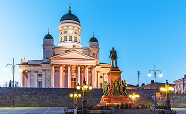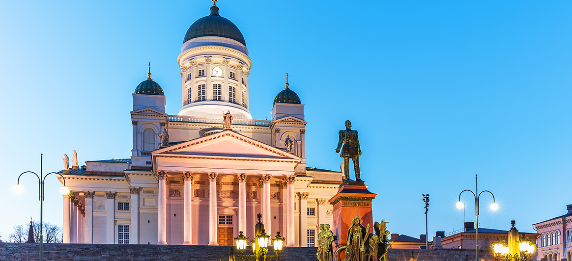 Catedrala din Helsinki: Adesea descrisă ca fiind inima orașului Helsinki, catedrala luterană, de un alb orbitor, a fost proiectată în secolul al XIX-lea de arhitectul Carl Ludwig Engel, ca parte a centrului imperial din Helsinki și de atunci a dominat orizontul din Piața Senatului, grație înălțimii și eleganței ei.