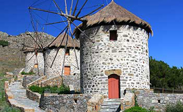 Kontias: Cea mai fermecătoare așezare de pe insulă, Kontias este un sat de foști armatori, cu mori de vânt pe jumătate distruse, case minunate construite din piatră, veritabile exemple ale arhitecturii locale și o distilerie care produce ouzo.