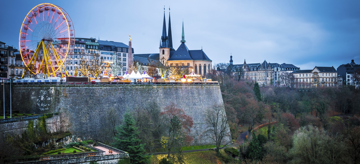 Chemin de la Corniche: Cea mai frumoasă promenadă a orașului începe de pe dealul Bock și coboară pe lângă cazemate și pe lângă fortificațiile zidului Wenzelsmauer, ajungând până la turnul Dräi Tier (Triple Gate), oferind o priveliște minunată asupra văii Alzette, asupra cartierului pitoresc Grund și asupra platoului Rham. Datorită panoramei de imagini care se desfășoară în fața sa, a fost descris ca „cel mai frumos balcon din Europa”.