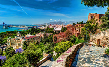 Alcazaba: Această fortăreață impresionantă, datând din secolul al XI-lea, care se înalță la poalele dealului Gibralfaro, a fost timp de secole palatul guvernatorilor mauri din Málaga. Construită pe diferite niveluri, cetatea are 11 turnuri de apărare, arcade deosebite, pasaje minunat decorate cu motive geometrice islamice și grădini de o frumusețe uluitoare, cu fântâni ornamentate care încântă pe oricine. Mergeți până la nivelul cel mai de sus și bucurați-vă de o priveliște superbă asupra orașului. Lângă intrare, în urma săpăturilor arheologice, s-a descoperit un amfiteatru roman din secolul al II-lea.
