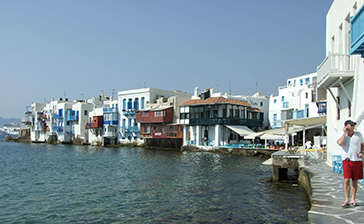 Mica Veneție și Kato Myloi: În Mica Veneție sau Skarpa, casele vechilor căpitani de vas se află chiar pe apă. Ușa spre mare avea menirea de a facilita schimburile între căpitani și pirați, astfel încât mărfurile să poată fi duse direct în subsolurile caselor. Morile de vânt din zona de sud a orașului Chora, principala localitate din Mykonos, prezintă unul dintre cele mai populare spectacole de pe insulă. Până la începutul secolului al XX-lea, acestea erau puse în mișcare de vânturile din Marea Egee pentru a măcina grâul cultivat pe insulă, care era apoi folosit pentru a face faimoasele fursecuri din Mykonos.