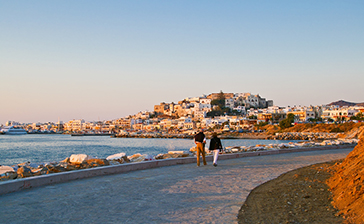 Orașul vechi: Orașul principal, sau Chora, din Naxos este construit în jurul portului insulei. Este un oraș insular plin de viață, construit sub formă de amfiteatru pe un deal, cu un castel venețian situat pe cel mai înalt punct al insulei, de unde priveliștea asupra acesteia este uluitoare. Pitorescul oraș vechi, o așezare cu străzi înguste cu arcade, case tipice zonei cicladelor și conace venețiene cu blazoane la intrări, se află la poalele castelului. Muzeul Arheologic, înființat într-o structură venețiană din secolul al XVII-lea, cu siguranță merită atenția vizitatorilor. Muzeul prezintă obiecte și opere de artă care provin din perioada de la finalul neoliticului până la începutul perioadei creștine.