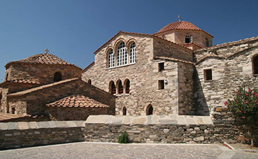 Panagia Ekatontapyliani: La o distanță relativ scurtă de portul Parikia se află cea mai veche biserică bizantină din Marea Egee, fondată de Sfânta Elena în urmă cu 17 secole. Este unul dintre cele mai importante monumente ale creștinismului timpuriu din Grecia, o bazilică în formă de cruce cu o cupolă care, de-a lungul istoriei sale îndelungate, a fost de multe ori victima distrugerilor. Merită remarcat faptul că sculpturile din interiorul bisericii au fost aduse din vechiul templu al lui Demeter care se afla în Parikia, iar cristelnița aflată în partea de sud a bisericii este cea mai veche cunoscută de Biserica Ortodoxă. Biserica Ekatontapyliani, adică „biserica celor 100 de uși”, găzduiește și Muzeul Bizantin din Parikia, cu o colecție deosebită de icoane rare și alte artefacte ecleziastice.