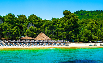 Plaje: Peste 60 de plaje sunt adunate pe această mică insulă din Sporadele de Nord și toate sunt fantastice. Majoritatea dintre ele pot fi accesate pe șosea, dar există unele la care se poate ajunge pe mare, cum ar fi faimoasa plajă Lalaria. În călătoria dvs. de la Chora la faimoasa și cea mai fotografiată plajă Koukounaries, unde pădurea aproape atinge apa, veți vedea cel puțin încă opt plaje uluitoare, dintre care unele sunt organizate și ideale pentru sporturi nautice, precum Tzaneria, Agia Paraskevi, Vromolimnos etc. La vest, de la Banana și Agia Eleni, vă puteți bucura de cel mai încântător apus de soare de pe insulă. Partea de nord a insulei are câteva plaje mai retrase: Portul Kastro, Xanemos, Mandraki sau Xerxes, deoarece se spune că de acolo Xerxis și-a început campania către Artemisium, Elia, Kechria, Limenaria, Megalos Gialos, Mikros și Megalos Aselinos (Agistros).