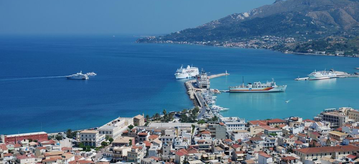 Zakynthos: Construit la poalele unui deal plin de vegetație, orașul Zakynthos sau Chora a fost distrus la cutremurul din 1953 și reconstruit pe ruinele vechiului oraș, fără a pierde nimic din caracterul impunător. Un loc central și punct de întâlnire al orașului este vasta piață Dionysios Solomos de pe strada de lângă mare, înconjurată de clădirile neoclasice ale Muzeului Bizantin, Centrul Cultural și Biblioteca Publică. Alături se află biserica medievală Agios Nikolaos, construită în 1561 și care deține un loc special în inima localnicilor, deoarece este locul în care a slujit ca preot sfântul patron al insulei, Agios Dionysios. Strada pietruită Roma este inima comercială a orașului Zakynthos și un loc ideal pentru o cafea, plimbări relaxante și admirat vitrinele. Strada aglomerată și-a luat numele de la Conacul Alexandros Romas, pe strada Loukas Karrer nr. 19, și este deschisă publicului pentru un tur al stilului de viață al aristocrației din Zakynthos în timpurile trecute.