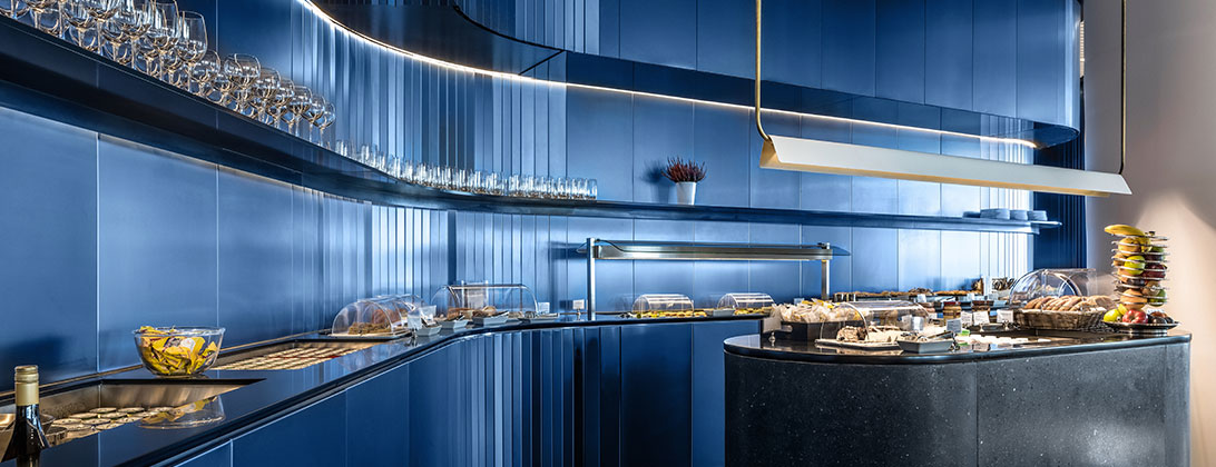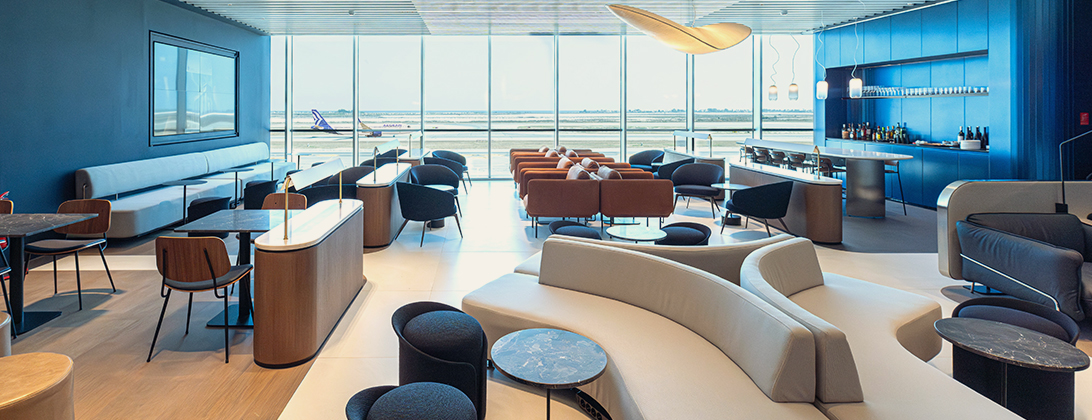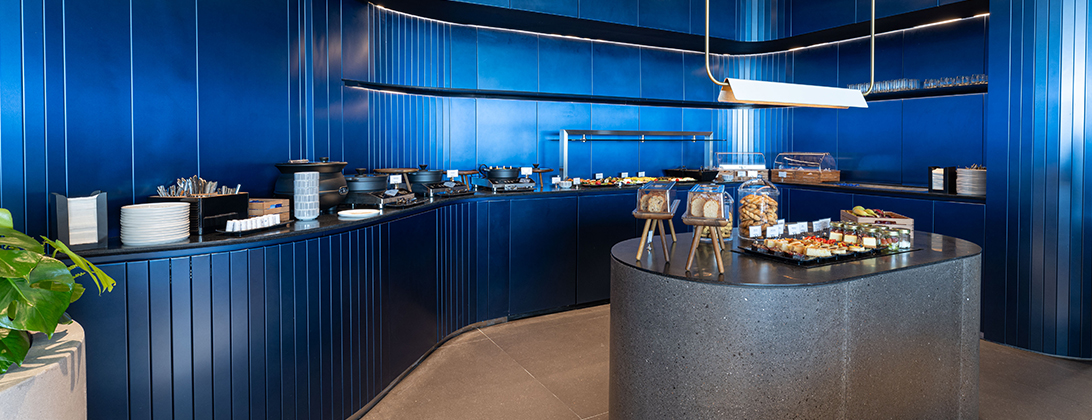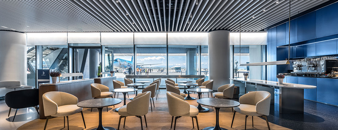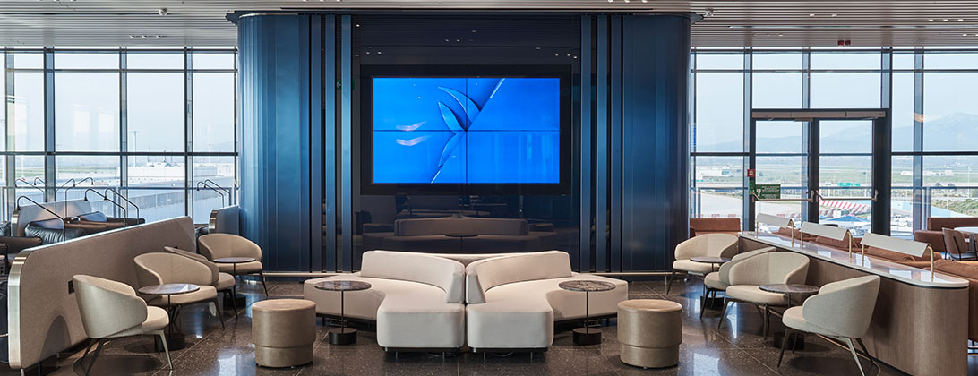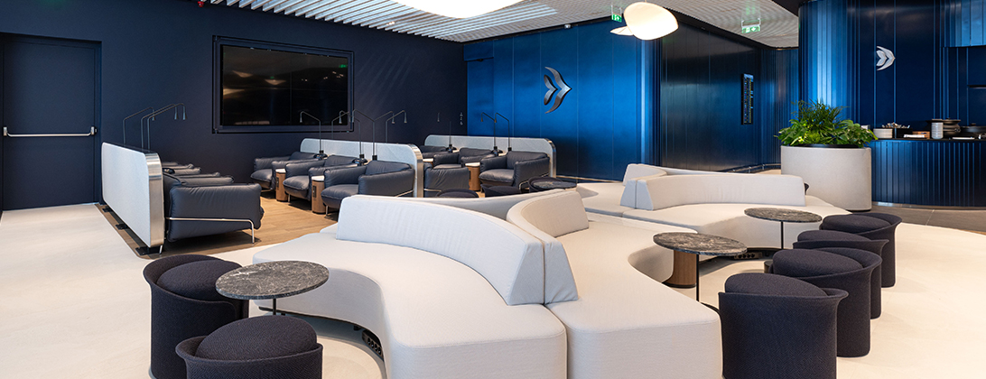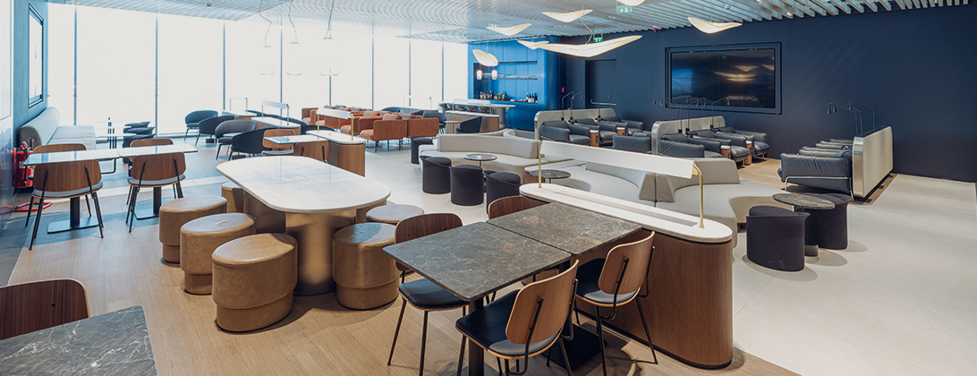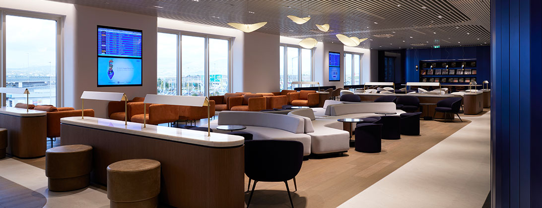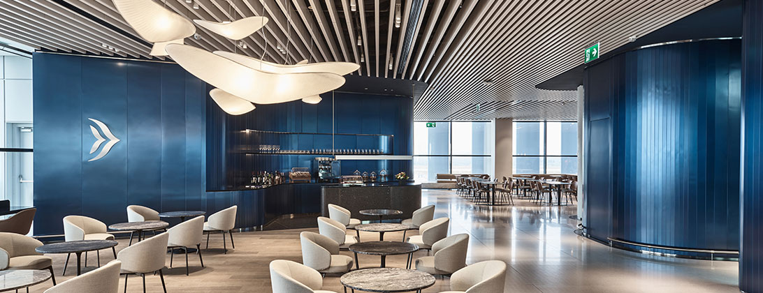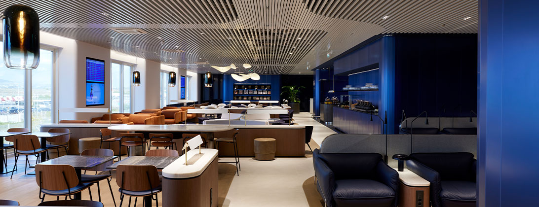 Noul Salon Business din Larnaca al companiei AEGEAN oferă pasagerilor o atmosferă plăcută în care să se relaxeze, să lucreze comod, să se bucure de o cafea, de o băutură sau de o gustare din bufetul bogat pus la dispoziția lor. Într-un spațiu de 345 de mp, proiectat și renovat cu materiale de înaltă calitate, am creat un mediu caracterizat prin ospitalitate și lux sofisticat.