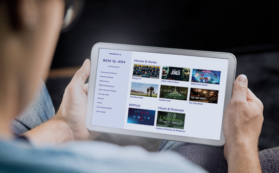 Luați loc, relaxați-vă și bucurați-vă de conținutul gratuit AEGEAN Portal sau conectați-vă la Wi-Fi și navigați pe internet!