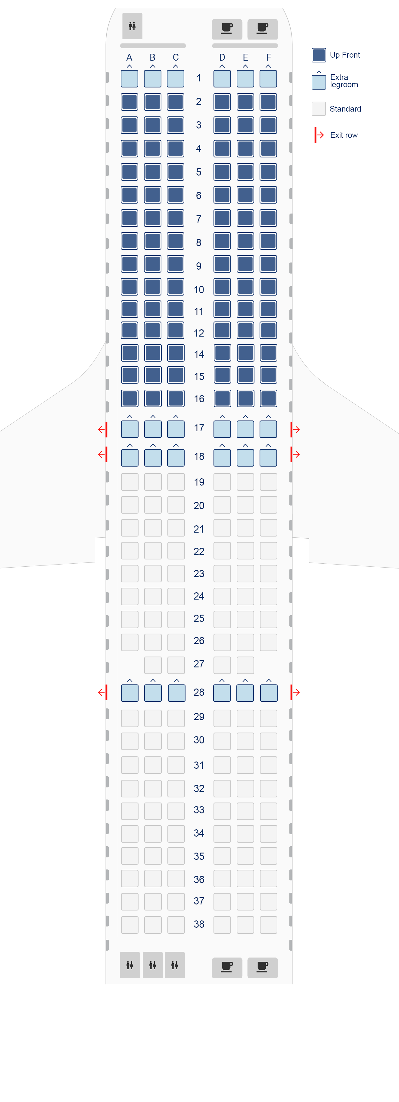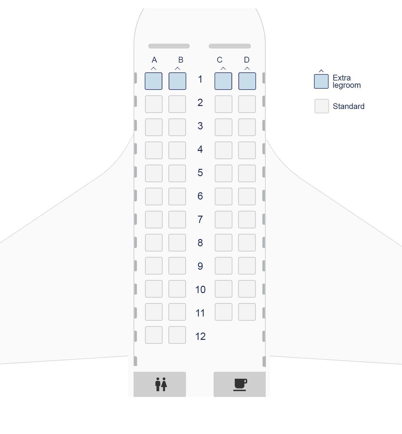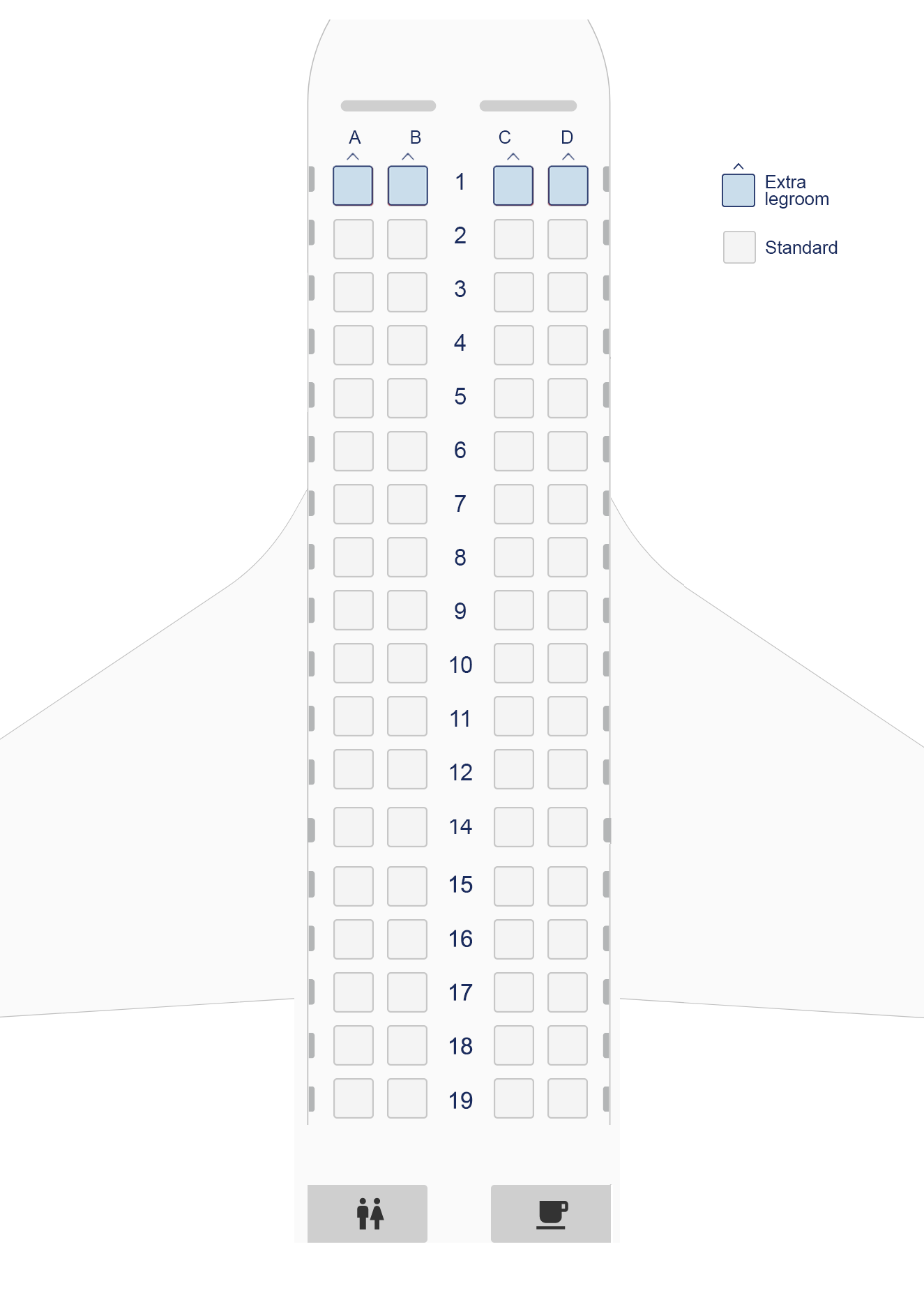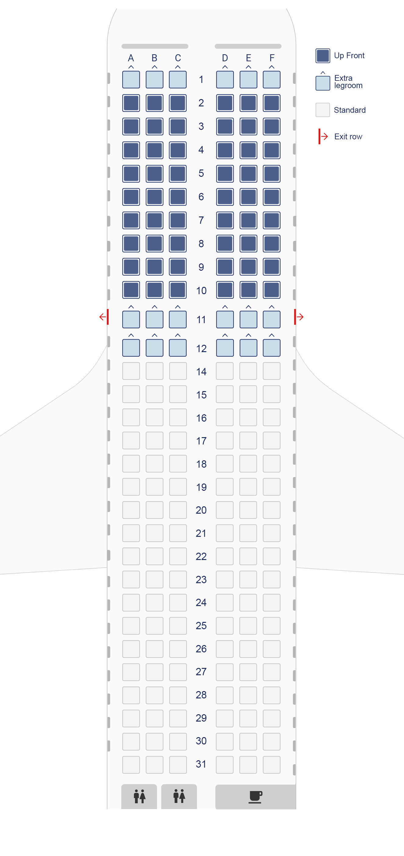 Hărțile locurilor sunt orientative, deoarece pot să existe diferențe între aeronavele de același tip. Hărțile exacte ale locurilor pot fi afișate la check-in.